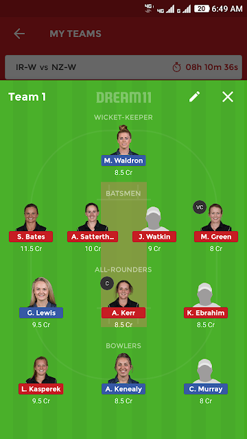Paid team get: IR-W vs NZ-W Match Paid best winning dream11 team Small league and Grand league in Prime Page: