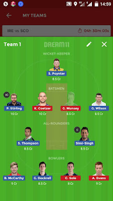 Paid team get: IRE vs SCO Match Paid best winning dream11 team Small league and Grand league in Prime Page: