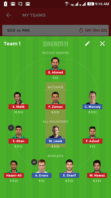 Paid team get: SCO vs PAK Match Paid best winning dream11 team Small league and Grand league in Prime Page: