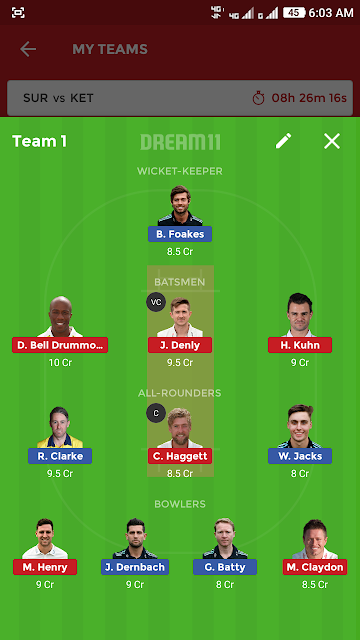 Paid team get: SUR vs KET Match Paid best winning dream11 team Small league and Grand league in Prime Page: