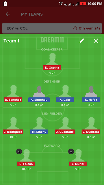 Paid team get: EGY vs COL Match Paid best winning dream11 team Small league and Grand league in Prime Page: